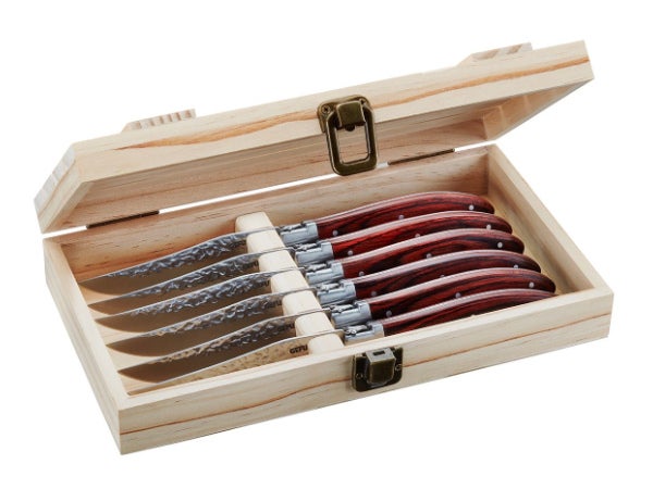 Pihviveitsiltä vaaditaan paljon, sillä mikä onkaan harmittavampaa kuin leikata mureaa pihviä tylsällä veitsellä. Kuuden kappaleen setissä on huipputerävät veitset koko porukalle.